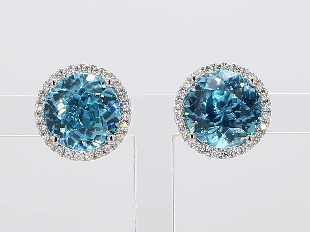 ROUND ZIRCON & ROUND DIAMOND 14KW EARRING