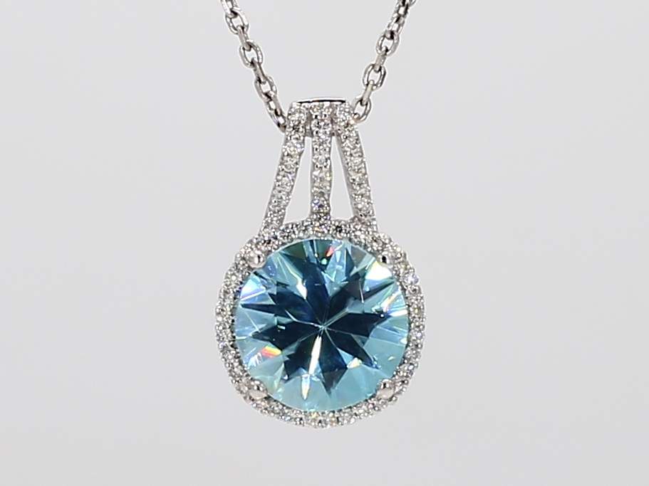 ROUND ZIRCON & ROUND DIAMOND 14KW PENDANT