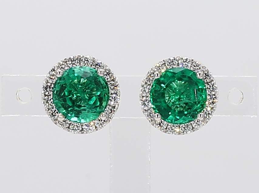 ROUND EMERALD & ROUND DIAMOND 18KW EARRING
