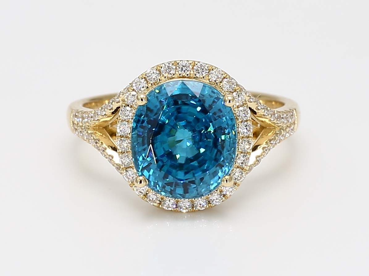 OVAL ZIRCON & ROUND DIAMOND 14KY RING
