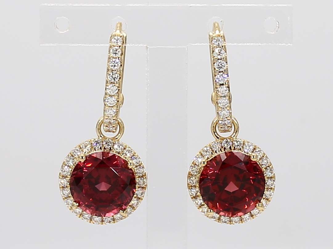 ROUND MALAYA GARNET & ROUND DIAMOND 14KY EARRING