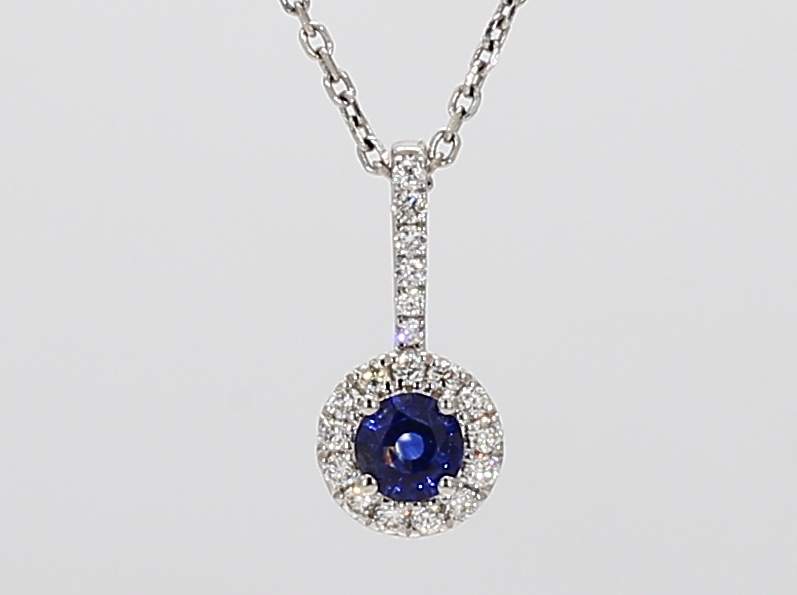 ROUND SAPPHIRE & ROUND DIAMOND 14KW PENDANT