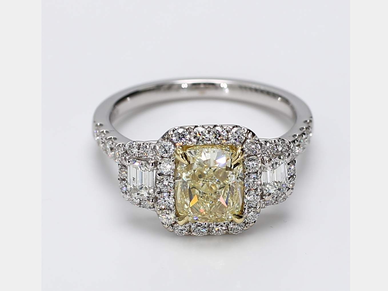 CUSHION DIAMOND S-T VVS2 GIA 6223774258 & EMERALD CUT & ROUND DIAMOND 18KW RING