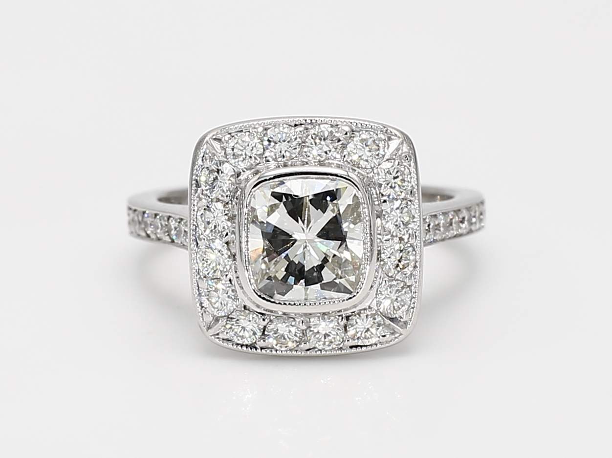 CUSHION BRILLIANT DIAMOND I VS1 GIA 2101973831 & ROUND DIAMOND 14KW RING