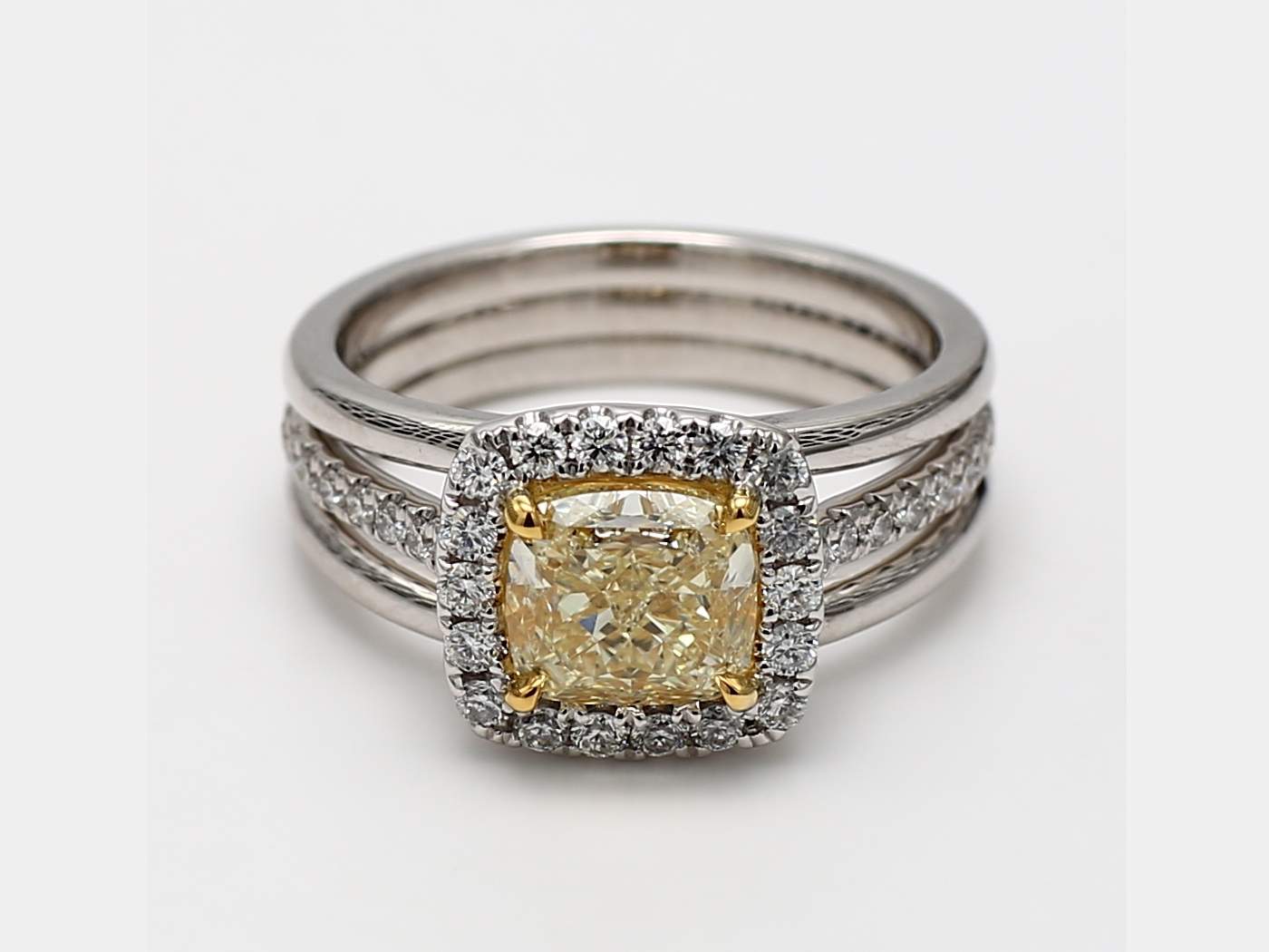 CUSHION YELLOW DIAMOND W-X VS2 GIA 2235025323 & ROUND DIAMOND 18KW RING
