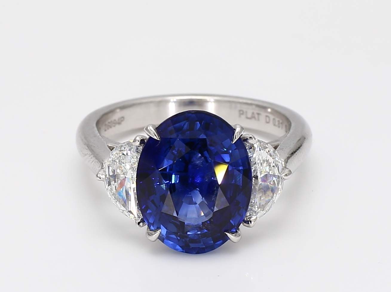 OVAL SAPPHIRE CDC 2505451 & HALF MOON DIAMOND D VVS2 GIA 6471696494 & D IF GIA 6472274933 PLATINUM RING