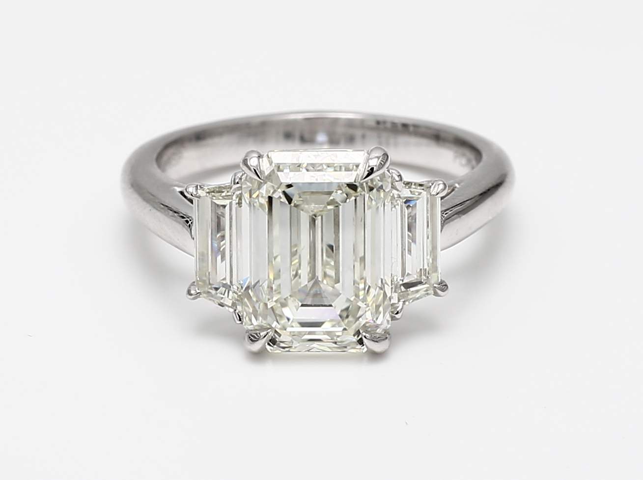 EMERALD CUT DIAMOND L VS2 GIA 2235366853 & TRAPEZOID DIAMOND PLATINUM RING